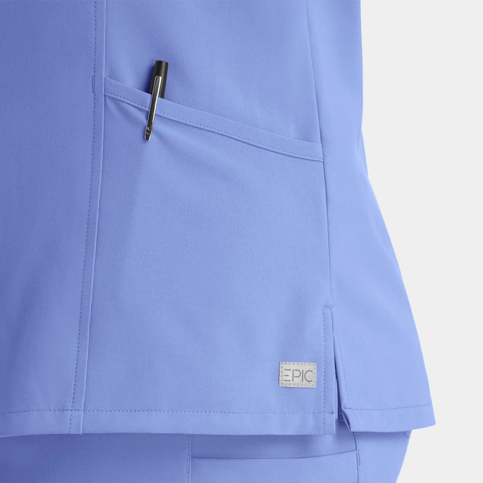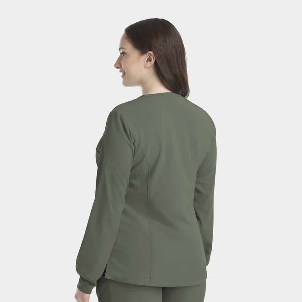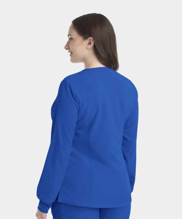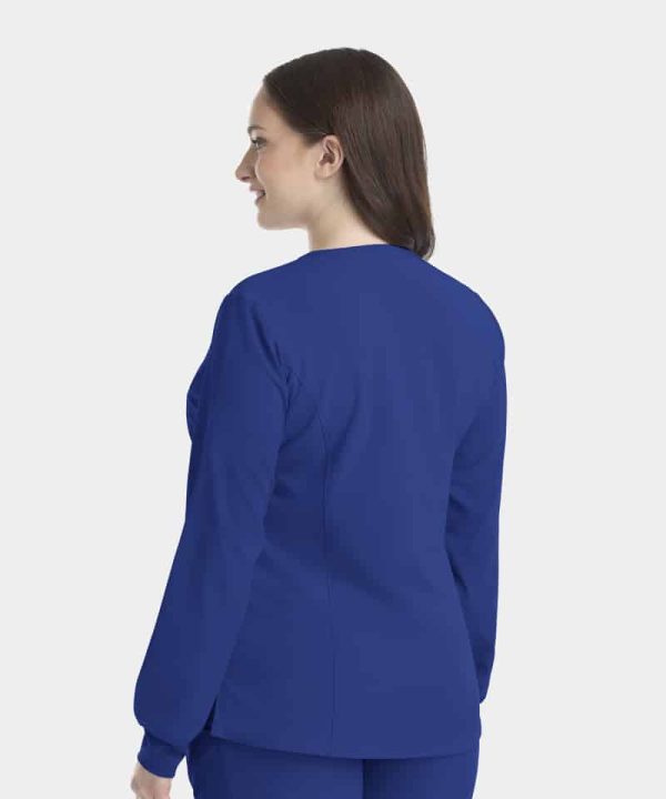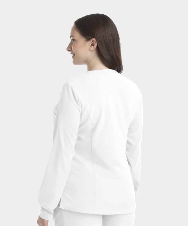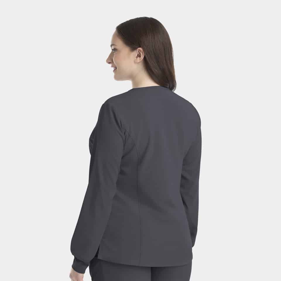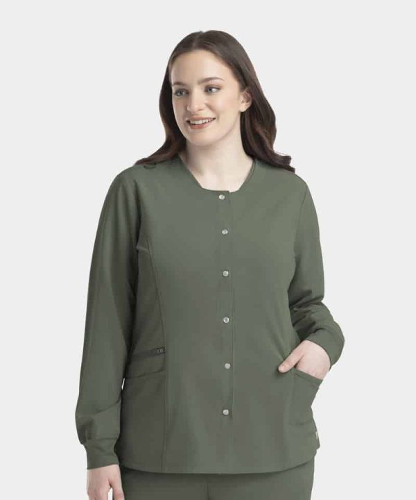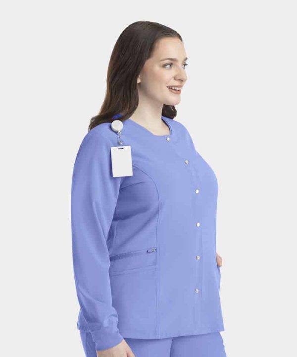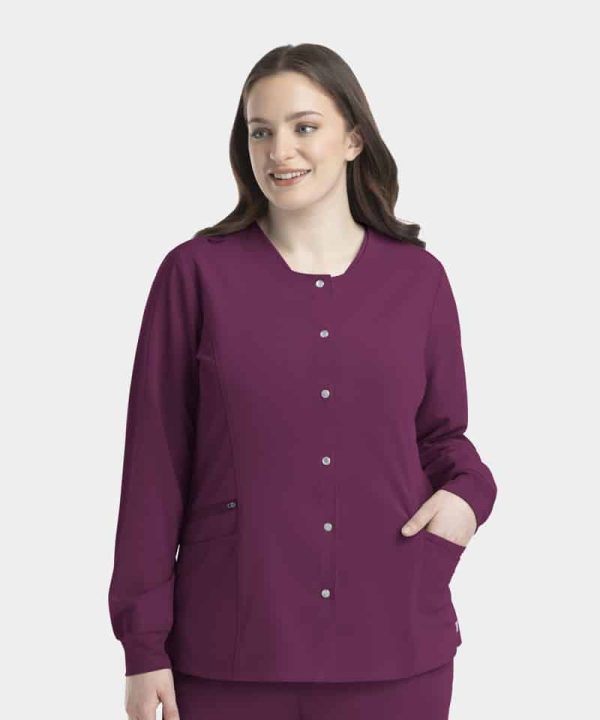 Experience the allure of our Women’s Snap Jacket. With a classic round neck, pearl snap accents, and a tailored bungee loop, it seamlessly blends style with utility. Micro-knit cuffs ensure a flawless fit, while pockets guard your essentials. Designed for the diligent healthcare warrior.