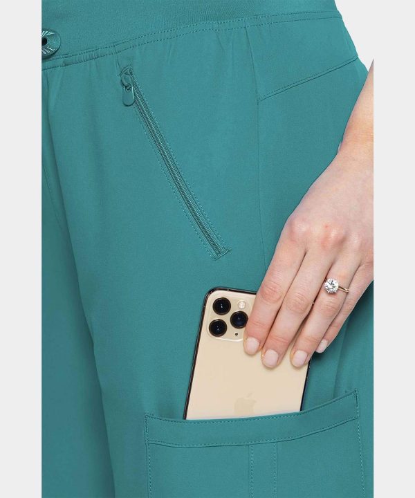 Put some spring in your step. These classic straight-leg pants feature an exclusive mechanical stretch fabric that moves with you, from the office or the nurses station to lunch or an after-hours get-together. Ultra-soft jersey-knit waistband with adjustable ties, Straight leg with side vents, Two cargo pockets, Two zipper accessory pockets, Insight Motion Fabric. Inseam: 31″