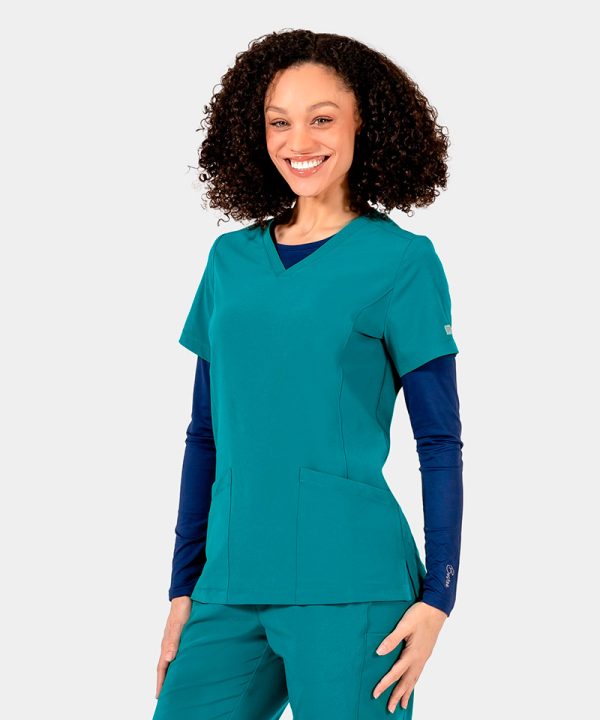 Experience the ultimate blend of fashion and function with our Women’s V-Neck Top. Tailored for healthcare warriors, its enhanced curved design complements every figure. Boasting 360? stretch, soft, lightweight fabric, and dynamic micro knit panels, it promises all-day comfort and timeless style.
